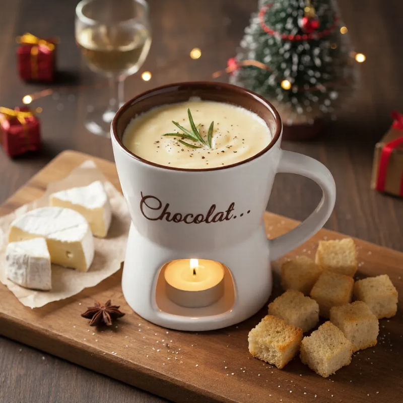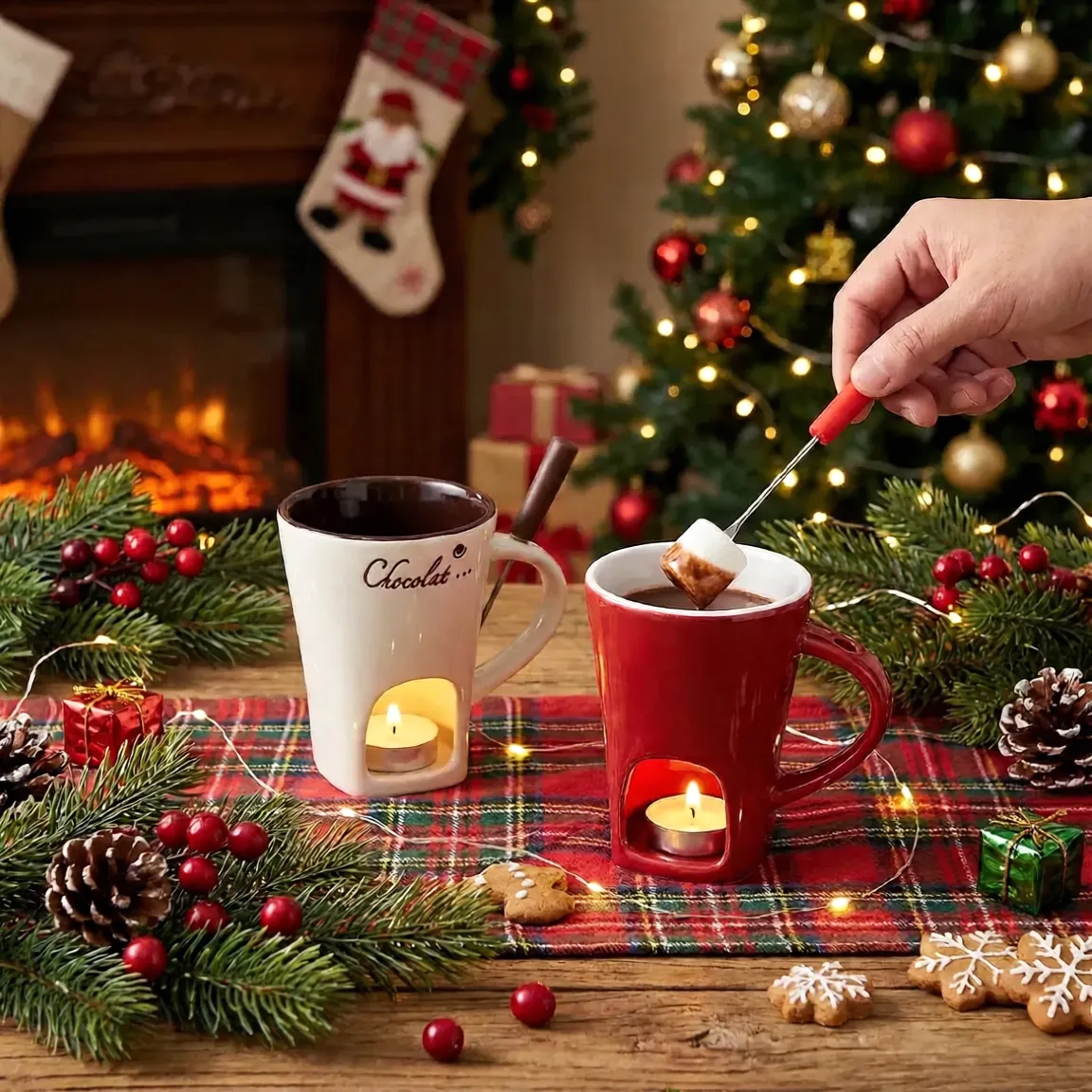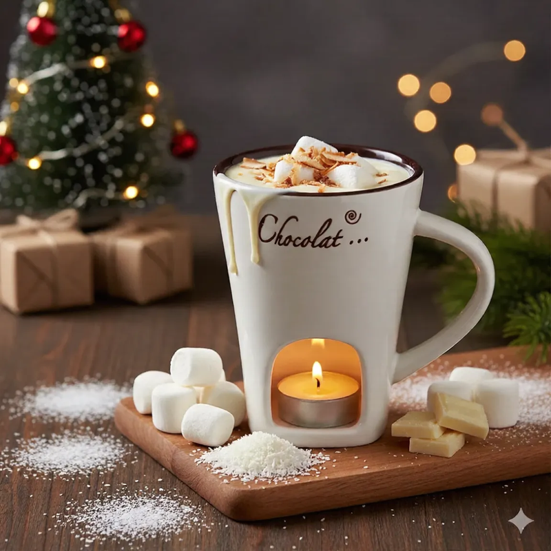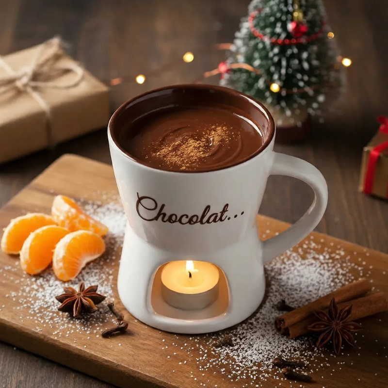 The Magic Fondue mug is made of high-quality heat-resistant ceramics. It is specially designed for heating from a candle. It is absolutely safe and does not require electricity or an open fire. Important: Always use only standard tea candles (tealights) and do not place the mug on a direct flame.
